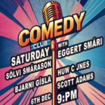 Each week, Eggert curates a lineup of three exceptional comedians from around the globe, providing a fresh mix of talent that ranges from local favorites to international stars. This diverse blend of cultures and comedic styles will be delivered in English, making it your ultimate ticket to the funniest night out in Iceland!